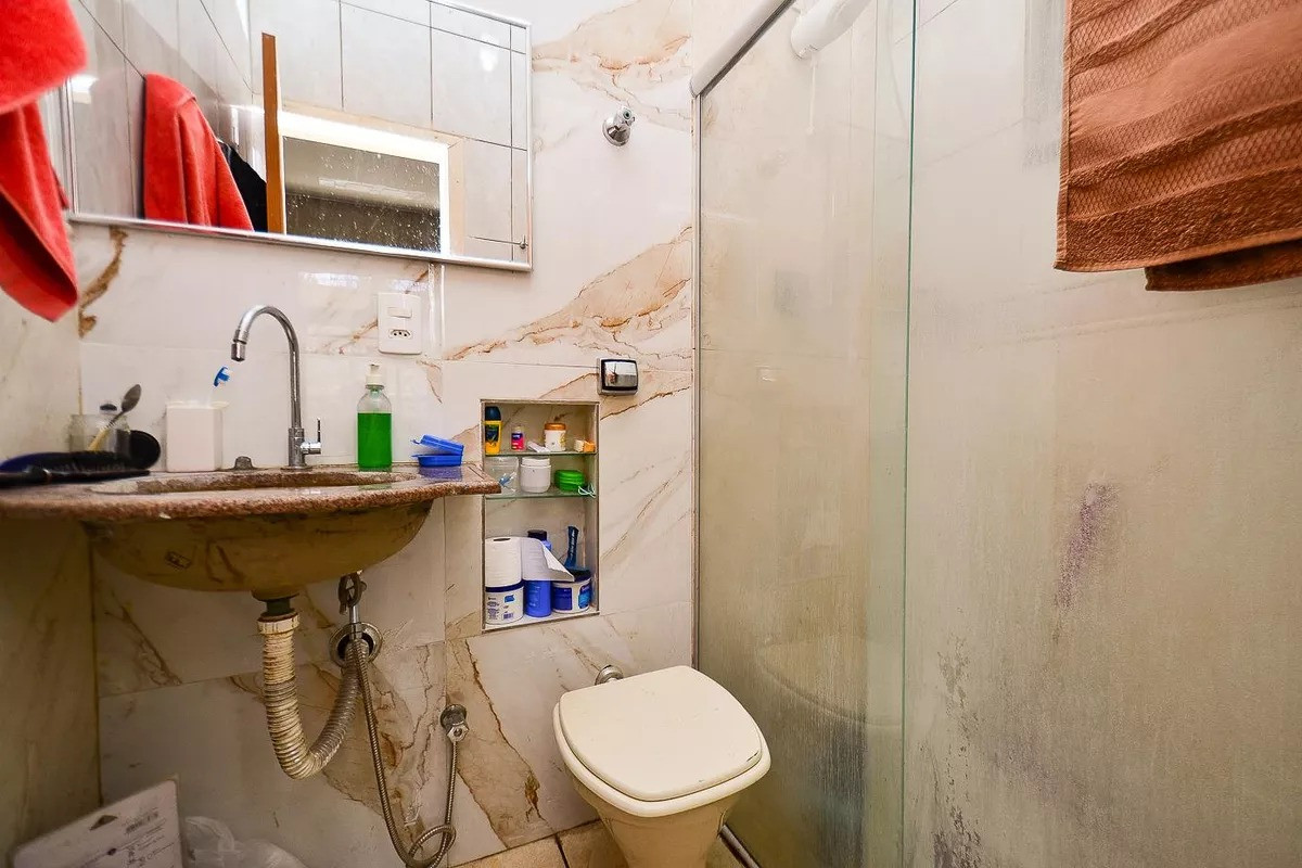 Banheiros (social e suíte) com excelente acabamento em cerâmica e box em blindex.