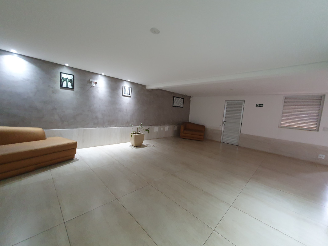 Sala ampla com piso em porcelanato.